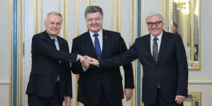 В понедельник президент Украины Петр Порошенко встретился с министрами иностранных дел Франции и Германии Жан-Марком Эро и Штайнмайером, обсудив с ними вопросы стабилизации ситуации на Донбассе.