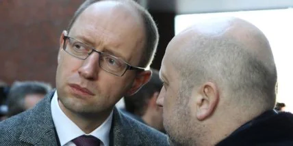 Турчинов и Яценюк у ЦКБ № 5 выпустили в небо голубей и баннер