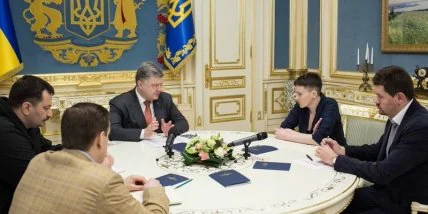 Президент Украины Петр Порошенко в субботу встретился с депутатом Верховной Рады, делегатом Парламентской ассамблеи Совета Европы от Украины Надеждой Савченко, обсудив с ней санкционный список "Савченко-Сенцова" и скоординировал совместные действия по ускорению освобождения украинских заключенных.