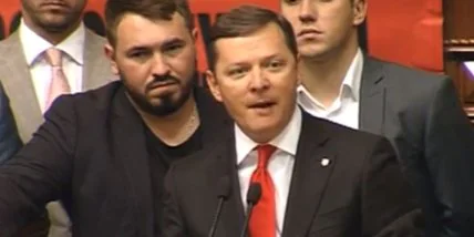 Депутаты от фракции Радикальной партии во главе с лидером фракции заблокировали трибуну Верховной Рады Украины.