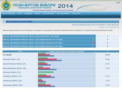 Обновлено 07:13 ЦИК обработала 25.30% протоколов на выборах народных депутатов Украины в 7 округах состоянием на 5.33 18 июля.