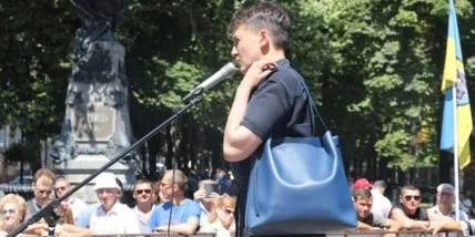 Савченко выступала с импровизированной сцены, которая установлена на площади, где более трех месяцев проходит бессрочная акция протеста против городского головы Геннадия Труханова.