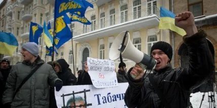 Сегодня, 25 декабря, под зданием Кабинета Министров Украины проходит акция протеста ВО "Свобода" против повторного назначения Дмитрия Табачника министром образования и науки, молодежи и спорта.
