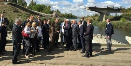 Министры иностранных дел Германии и Франции Франк-Вальтер Штайнмайер и Жан-Марк Эйро вместе с украинским коллегой Павлом Климкиным прибыли на Донбасс. Об этом говорится в Twitter МИД Украины.