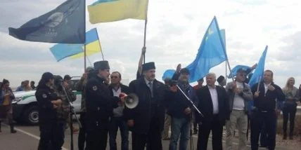 Сегодня участники и волонтеры блокады Крыма прошлись шествием к админгранице с Крымом. Р.Чубаров подошел вплотную к линии разграничения.