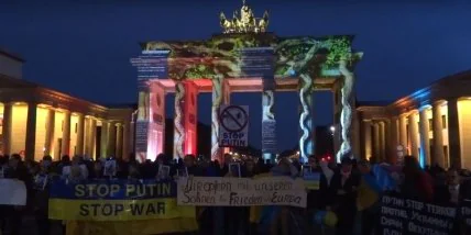 Гражданка ФРГ с немецкими, украинскими и российскими корнями Ксения Вернер объясняет, что привело ее на акцию протеста: "Мы протестуем против незаконной войны, против агрессии большой державы против страны, которая слабее. Мы протестует против многочисленных военных преступлений этого человека, который развязал войну. Это свинство, несправедливость и ложь!".
