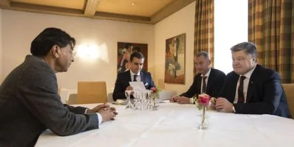 Президент Украины Петр Порошенко в Давосе провел встречи с руководителями ряда крупных западных компаний, в том числе с председателем Совета директоров компании "АрселорМиттал" Лакшми Митталом и генеральным директором компании Cargill Дэвидом Макленнаном.