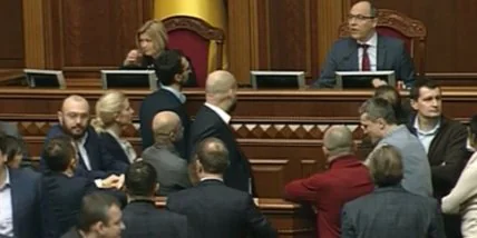 Депутаты нескольких фракций блокировали трибуну парламента во время рассмотрения законопроекта о получении наследства.