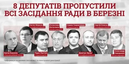 В марте ни одного раза в Верховную Раду не пришли 8 нардепов.