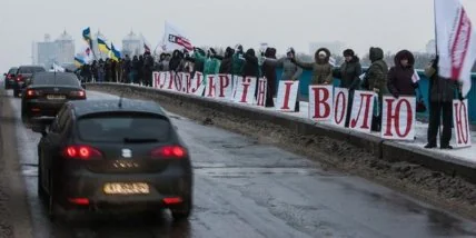 В День Соборности Украины, 22 января члены киевской организации партии "Батькивщина" выстроились в живую цепь на мосту Метро через Днепр, держа в руках баннер "Юле - волю! Украине - волю!", государственные флаги и партийную символику.