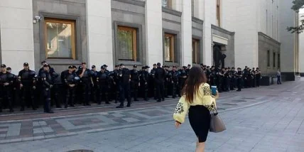 У здания Рады собралось около 300 человек на акцию протеста с требованием отмены депутатской неприкосновенности, проведения досрочных парламентских выборов.