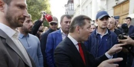 Как сообщается, представители Радикальной партии и партии "Блок Петра Порошенко" сегодня устроили потасовку под зданием столичного Печерского суда. Депутаты из БПП принесли под здание суда петуха, на котором было написано имя Ляшко, бросали в главу "радикалов" деньги и пытались облить водой.