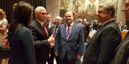 "США поддерживают Украину. Очень позитивная встреча с вице-президентом США Майком Пенсом и представителем США в ООН Ники Хейли перед заседанием Совбеза ООН по миротворчеству", - написал С.Цеголко.