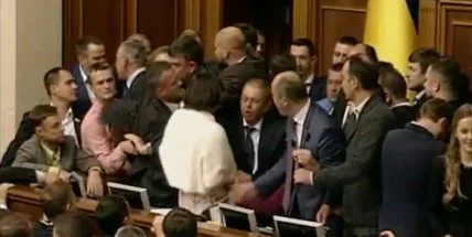 В заседании Верховной Рады Украины объявлен перерыв в связи с потасовкой в сессионном зале.