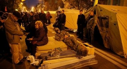 17:40 Участники акции протеста под зданием Верховной Рады в Киеве установили уже 14 палаток на улице Грушевского