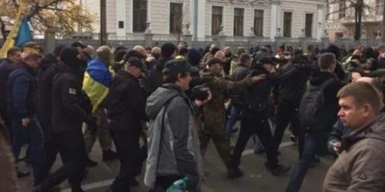 Участники акции возле Верховной Рады устроили потасовку при выходе депутата от фракции "Блока Петра Порошенко" Олега Барны из здания парламента.