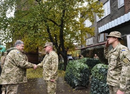 Президент Украины Петр Порошенко провел в Авдеевке Донецкой области совещание по оперативной обстановке на фронте и пообщался с несущими службу в хоне АТО военнослужащими Вооруженных сил Украины.