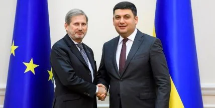 Премьер-министр Украины Владимир Гройсман и комиссар Европейского Союза по вопросам расширения и политики соседства Йоханнес Хан обсуждают внедрение Соглашения об ассоциации между Украиной и Европейским Союзом.