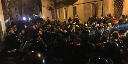 Возле управления СБУ на пер. Аскольдовом 3-А митинговали сторонники экс-главы Одесской ОГА Михеила Саакашвили, которого, предположительно, доставили в это управление. Об этом сообщает "112 Украина". Въезд во двор СБУ преградили автобусом, перед ним стоит несколько рядов силовиков. Во двор заехал автобус с бойцами Нацгвардии. Также те сторонники Саакашвили, которые находятся в палаточном городке под Верховном Радой, идут к управлению СБУ.