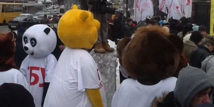 Сторонники Ю. Тимошенко вместе с медведями и пандами пришли под Апелляционный суд.