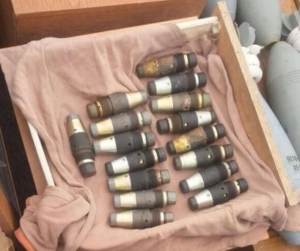 Кроме этого, по словам В. Грицака, было изъято 46 единиц 120-мм мин с вкрученными взрывателями М-12, вышибными патронами и дополнительными пороховыми зарядами, 6 противотанковых мин осколочного действия МОН-50 производства РФ, 6 мин калибра 82 мм с вкрученными реактивными двигателями к противотанковому гранатомету РПГ-7 и взрывателями М-6, 12 пороховых вышибных зарядов к выстрелам ручного противотанкового гранатомета РПГ-7, два противотанковых гранатомета РПГ-22, 6 выстрелов к противотанковому гранатомету РПГ- 7, 20 гранат Ф-1 и 20 запалов к ним, 20 гранат РГД-5 и 20 запалов к них, 28 гранат для подствольного гранатомета ВОГ-25.