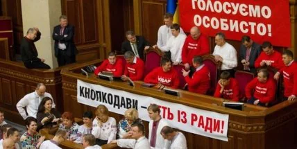 Сегодня оппозиция продолжает блокировать президиум и трибуну Верховной Рады.