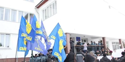 "Свободовцы" штурмовали стены Тернопольского университета.