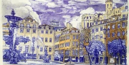 Заключенный в московском СИЗО Роман Сущенко нарисовал городской пейзаж португальской столицы Лиссабона.