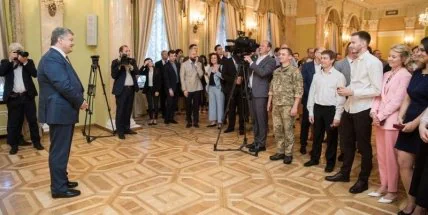 "Раньше мы говорили, что у нас только военные и дипломаты стоят на передовой линии. Сегодня мы можем надеяться, что и значительное количество журналистов защищают наш суверенитет", - отметил Порошенко.