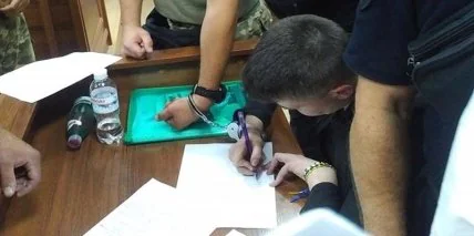 "Я объявляю бессрочную голодовку на беззаконные преступные действия судьи Бугеля, прокуроров Банника и Климовича, следователя Томусяка, которые осудили меня без адвокатов, не дав мне даже возможность высказать свою позицию в судебном заседании в свою защиту", - написала Савченко.