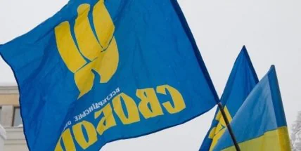 Сегодня в Хмельницком активисты областной организации ВО “Свобода” сожгли флаг "Партии регионов".