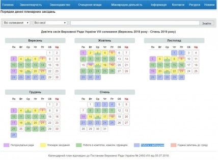 Верховная Рада опубликовала календарный план на следующую сессию