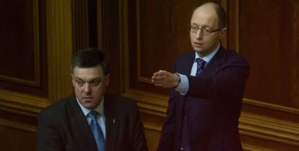 Колонна во главе с лидерами оппозиции Арсением Яценюком и Олегом Тягнибоком направляется к Соборной площади, где возле памятника Тарасу Шевченко состоится митинг.