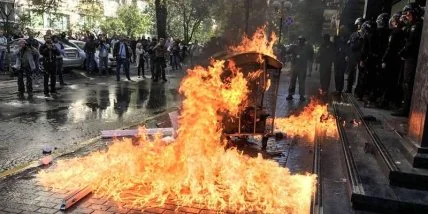 Возле Генпрокуратуры Украины проходят стычки правоохранителей с активистами "ультраправых" организаций.