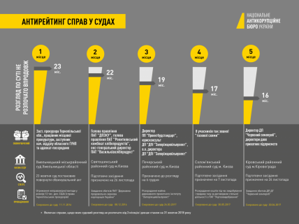 В НАБУ также отметили, что причины откладывания и переносов заседаний разные: объективный недостаток судей, неявка, болезни или отпуска участников процесса.