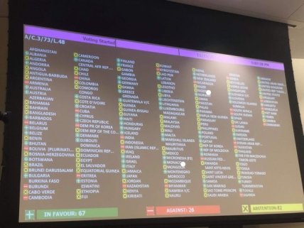 Вместо этого 26 стран, в том числе Россия, проголосовали "против".