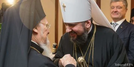 Напомним, 5 января 2019 года Вселенский патриарх Варфоломей подписал Томос об автокефалии ПЦУ. В молебне перед подписанием документа принимали участие предстоятель ПЦУ митрополит Епифаний, перешедшие в ПЦУ из УПЦ (Московского патриархата) митрополит Александр (Драбинко) и митрополит Симеон (Шостацкий), митрополит Луцкий и Волынский Михаил (Зинкевич) – от УПЦ Киевского патриархата.