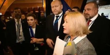 Во время выступления Геращенко представитель пропагандистского телеканала "Россия 1" телеведущая Ольга Скабеева провокационно и агрессивно пыталась вмешиваться в общение Геращенко с украинскими журналистами. Тогда, народный депутат Борислав Береза оттолкнул пропагандистку.
