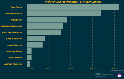 По итогам деклараций 2017 года был составлен список наиболее богатых кандидатов в президенты Украины.