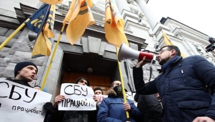 "Национальный корпус" пикетировали здание СБУ требуя наказания для Виктора Медведчука.