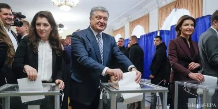 Порошенко пришел на избирательный участок голосовать со всей семьей