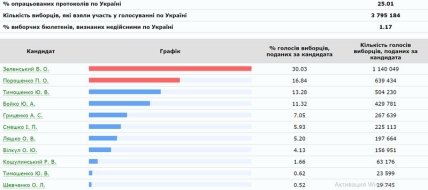 04:48 Центральная избирательная комиссия на этот час обработала 25,01% протоколов в электронном виде на выборах Президента Украины.