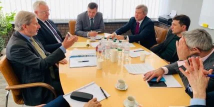 Новоизбранный президент Украины Владимир Зеленский провел встречу с еврокомиссаром по вопросам расширения и политики добрососедства Йоханнесом Ханом.