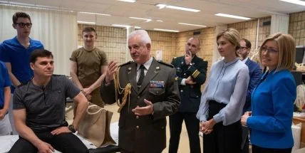 Первая леди посетила военный госпиталь им.королевы Астрид, где проходят реабилитацию военные: Дмитрий Кучер, Евгений Пасичник, Антон Матвейчук.