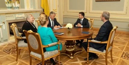 В свою очередь Зеленский сказал: "Госпожа президент заверила в дальнейшем содействии европейской интеграции Украины на основе полного выполнения Соглашения об ассоциации с Евросоюзом, а также об углублении нашего практического сотрудничества с НАТО, которое усиливает оборонительные способности Украины".