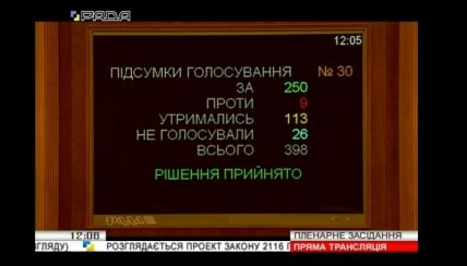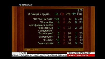 За соответствующий президентский законопроект №2116 "О Государственном бюро расследований" по совершенствованию деятельности ГБР", проголосовали 250 народных депутатов.