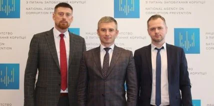 Председатель Национального агентства по вопросам предупреждения коррупции Александр Новиков представил своих заместителей Ивана Преснякова и Романа Сухоставца.