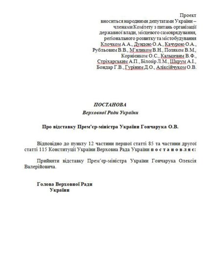 Как указано, 4 марта проект был направлен в комитет. Известно, что комитет поддержал отставку Гончарука.