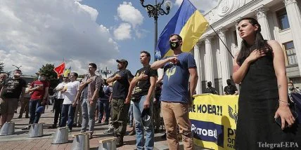 Под стенами Верховной Рады второй день продолжается митинг. Активисты протестуют против рассмотрения скандального "языкового "законопроекта.