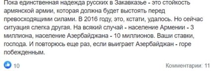 Журналист предположил, какую конечную цель преследует Азербайджан в этой войне и как поведет себя Россия: "Азербайджан не будет нападать на Армению. Его цель - именно Нагорный Карабах, а это пока еще не часть Армении для того, чтобы Россия могла оказывать открытую военную помощь своим армянским "прокси". Поэтому русским остается направлять в помощь армянам вагнеровское отребье под видом любителей горных пейзажей и минеральных вод, но официально вести себя довольно сдержанно".
